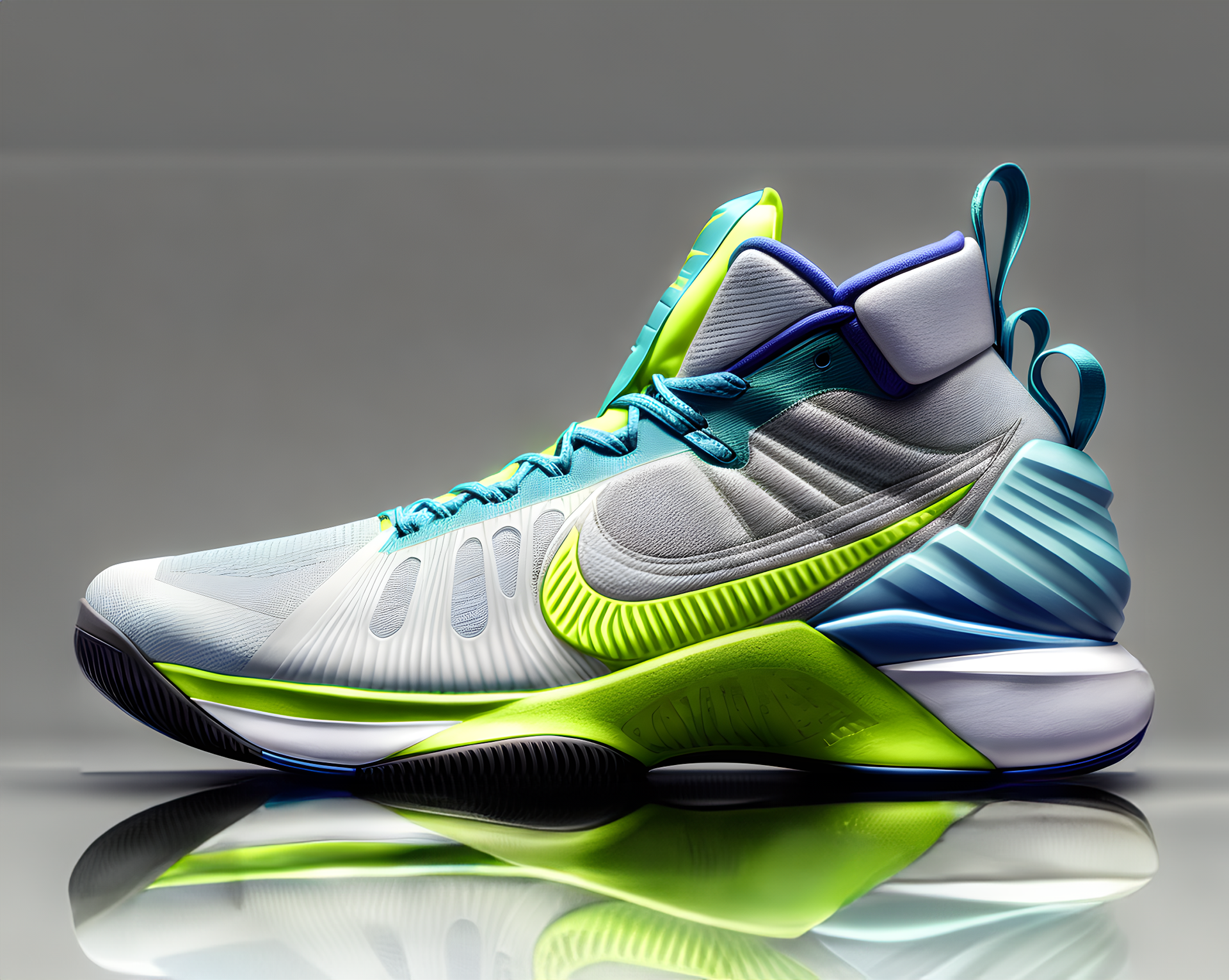 An extension of the Nike Trail Runner color redesign. What if this trail runner was combined with a Nike Hyperdunk creating a basketball shoe made for the PNW. Rendered in AI NewArc.